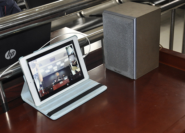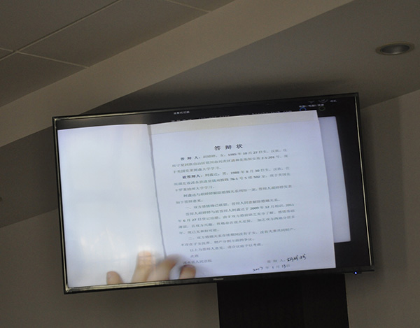 在庭审现场,互联网技术将身居美国的原、被告二人的图象、音频都引导到科技法庭设备上,对法官的每项询问有应有答,书记员项项记录在案。每份证据都通过证据展示台进行展示,原、被告通过视屏对展示的证据进行当庭质证。经过法庭调查、法庭辩论、法庭调解后,原、被告双方当庭达成调解协议,原、被告调解离婚。法庭将整个庭审过程进行全程录音录像,刻录制作光盘附卷。