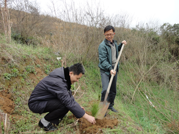 ,植树节,清泉法庭干警参加清泉镇组织的植树活动。在龚铺树,法庭干警共植树