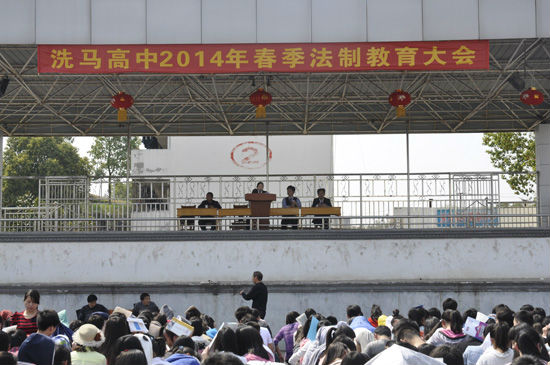 洗马法庭党支部书记、庭长翟群结合本院2013年审结的4件未成年人犯罪案例,给洗马高中1000多名学生上了一堂生动的法制课。在学习和互动中,以案释法,增强学生辩别是非和自我保护意识。以法育人,教育、引导学生远离网吧、远离毒品、远离危险,预防青少年违法犯罪。