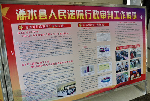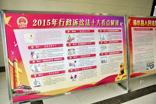 新行政诉讼法于5月1日正式实施。浠水法院还在会场放置了《2015新行政诉讼十大看点解读》和《浠水县人民法院行政审判工作解读》宣传展板,加大新修行政诉讼法的宣传力度,促进全社会知法、守法、遵法。
