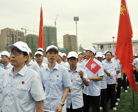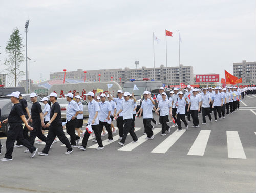 6月14日,黄冈市第四届运动会倒计时100天浠水县誓师大会暨万人健步迎四运活动在浠水体育场举行,来自浠水县各单位以及乡镇38个方阵近万人参加。