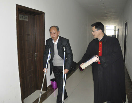 3月27日,浠水法院人民陪审员周琼不顾腿伤,坚持拄着拐杖来到浠水法院参加案件的庭审,让在场所有人着实感动。