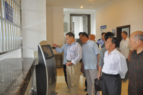 退休老党员们参观法院新建成的诉讼服务中心,对诉讼服务中心添置的安检系统、自助查询机等高科技设施产生了浓厚的兴趣,细心的听取介绍,还参观法院文化长廊,仔细观看长廊中展示的干警的书画作品,为法院新的发展变化和浓厚的法院文化氛围表示高兴。