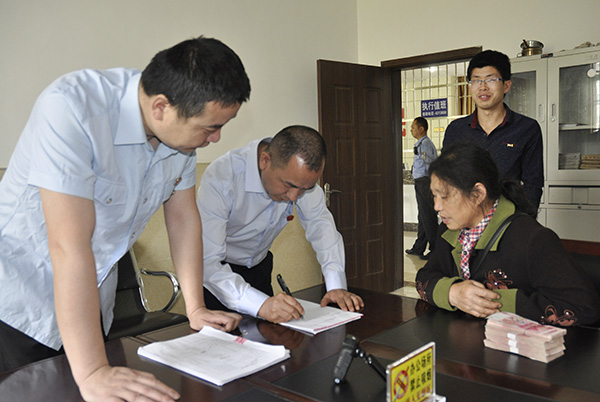 4月18日,被执行人胡某主动到法院履行义务,将3.8万元执行义务款一次性交到申请执行人段女士手中,案结事了。