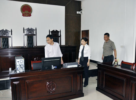 在洗马法庭,胡福东院长察看了法庭新改造的诉讼引导、诉讼服务、调解室和审判庭等,并就如何积极应对立案登记制给审判工作、法庭工作带来新的变化,与法庭干警进行了座谈。