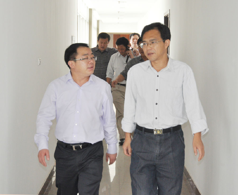 黄文虎县长(左)在胡福东院长的陪同下视察法院工作