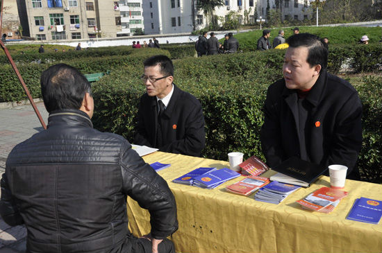 2014年12月4日,是国家首个宪法日也是全国法制宣传日。浠水法院干警组成志愿者小分队,走上街头宣传宪法,营造全社会尊崇宪法,信仰法治的氛围,并以“送法到身边”为主题开展普法宣传活动,义务为群众提供法律咨询和帮助,普及法律知识,受到来往群众的热烈欢迎。